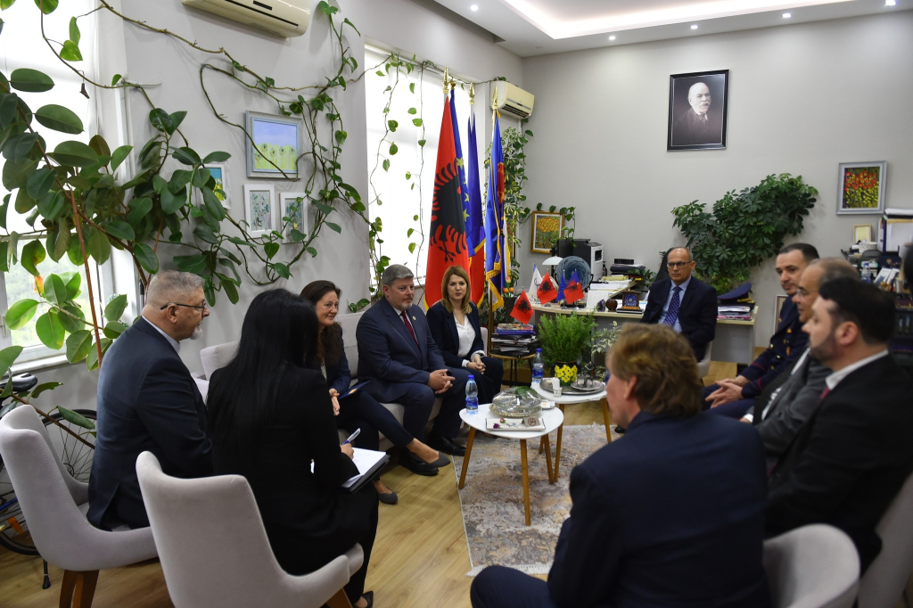 Akademia e Sigurisë – Zv.ministri i Brendshëm Andi Mahila mori pjesë në dorëzimin zyrtar të certifikatës së akreditimit ndërkombëtar të Kolegjit Profesional të Formimit Policor, për vitet 2024–2027 nga IADLEST – një arritje që konfirmon përmbushjen e standardeve më të larta në arsimimin dhe trajnimin e punonjësve të Policisë. Në ceremoni mori pjesë edhe Zv.drejtori i ICITAP, Stephen Fields, Drejtori i Përgjithshëm i Policisë së Shtetit, Ilir Proda, Rektori i Akademisë, Ilirjan Mandro, drejtues policorë, pedagogë studentë e kursantë. Ky akreditim është rezultat i përkushtimit të Akademisë së Sigurisë, në bashkëpunim me ICITAP dhe partnerët ndërkombëtarë, për ta kthyer këtë institucion në një qendër ekselence për formimin profesional policor. Në thelb të një shërbimi policor cilësor qëndron arsimimi i mirëfilltë, etik dhe profesional. Ndaj, në korrik hapet thirrja e radhës për të rinjtë që duan të jenë pjesë e së ardhmes së Policisë së Shtetit. Ftesa është e hapur – Shqipëria ka nevojë për gjeneratën e re të ruajtësve të rendit dhe ligjit! Me krenari u vlerësua kontributi i studentëve të Akademisë së Sigurisë në menaxhimin e tre ngjarjeve madhore për vendin: Giro d’Italia, Samiti i Komunitetit Politik Evropian dhe zgjedhjet e 11 majit. Ata nuk ishin vetëm në proces formimi – por në terren, krah për krah me strukturat e sigurisë. Shqipëria po dëshmon se është gati të marrë përgjegjësi të mëdha në skenën europiane, me institucione të afta, njerëz të përkushtuar dhe një vizion të qartë për të ardhmen. Kjo është fytyra e re e Policisë Shqiptare, ndërtuar me punë, përkushtim e partneritet të fortë.