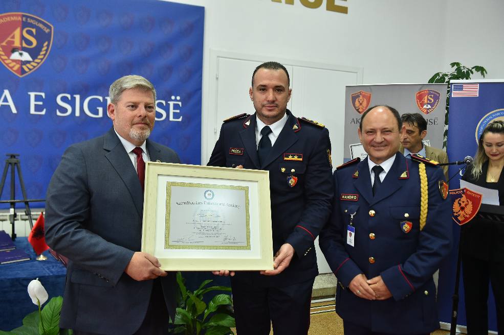 Është një moment i veçantë dhe i rëndësishëm për sistemin tonë të sigurisë, që sot, në ambientet e Akademisë së Sigurisë, kremtojmë dorëzimin zyrtar të certifikatës së akreditimit të Kolegjit Profesional të Formimit Policor për vitet 2024 – 2027, nga Shoqata Ndërkombëtare e Drejtorëve të Standardeve dhe Trajnimit të Agjencive të Zbatimit të Ligjit – IADLEST. Ky certifikim, i fituar pas një procesi të gjatë dhe rigoroz vlerësimi, është një dëshmi konkrete e përmbushjes së standardeve ndërkombëtare në formimin profesional të punonjësve të Policisë së Shtetit. Ai është gjithashtu një mirënjohje për vizionin, përkushtimin dhe seriozitetin e Akademisë së Sigurisë, e cila mbështetur nga ICITAP dhe partnerët tanë ndërkombëtarë, po kthehet në një qendër ekselence për arsimimin policor.